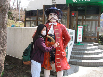 宿を出て、芦ノ湖に赴く。海賊船に乗るでもなく、海賊と記念写真。