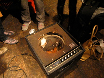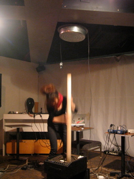カンカンに適量のお米を入れて、沸騰させ、うまくいくと気圧の差で、ブォ〜ンと音が鳴る。パフォーマー(8人くらい)がそのカンカンを持って、大き な休息会場内を歩いて、音を干渉させたりしながら空間全体の音を構成していくという感じのパフォーマンスでした。意外とカンカンからでる音が大きかったこ とにびっくり。音が干渉していく感じとか、すごいおもしろかったです。